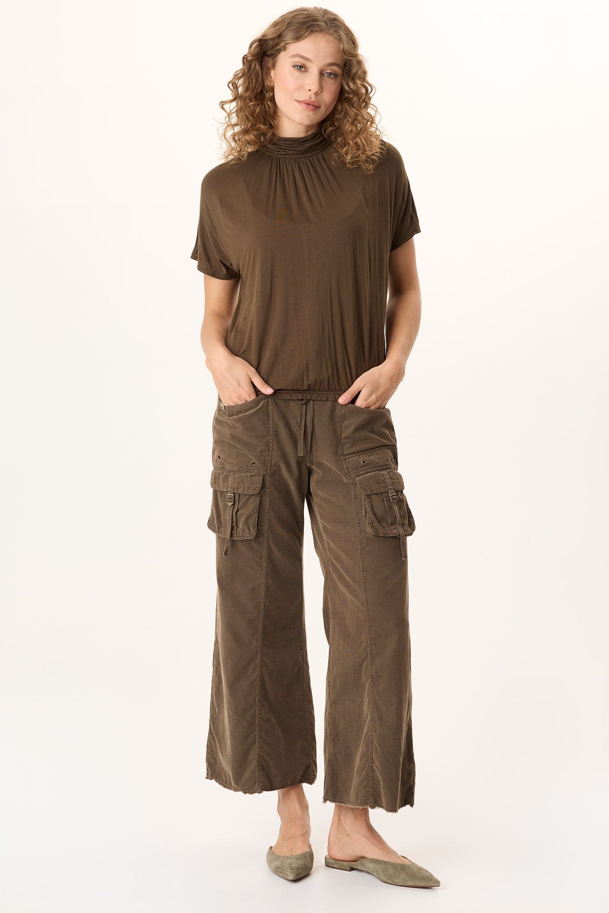 Arwen Soft Jersey Mock Neck Tee in Apollo Pigment