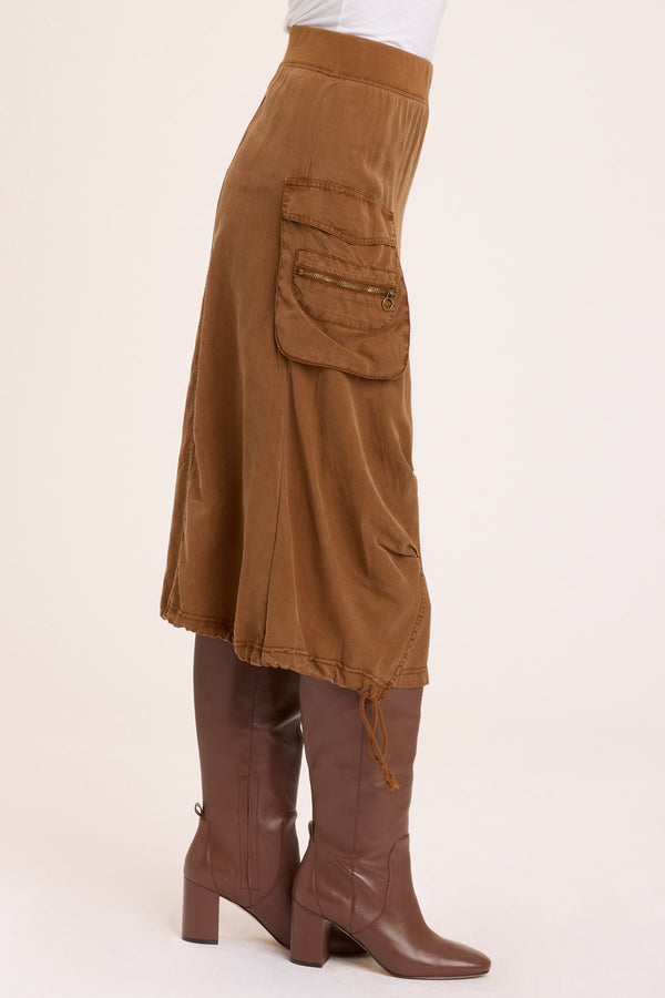 Sisu Corduroy Adjustable Cargo Midi Skirt in Papaver