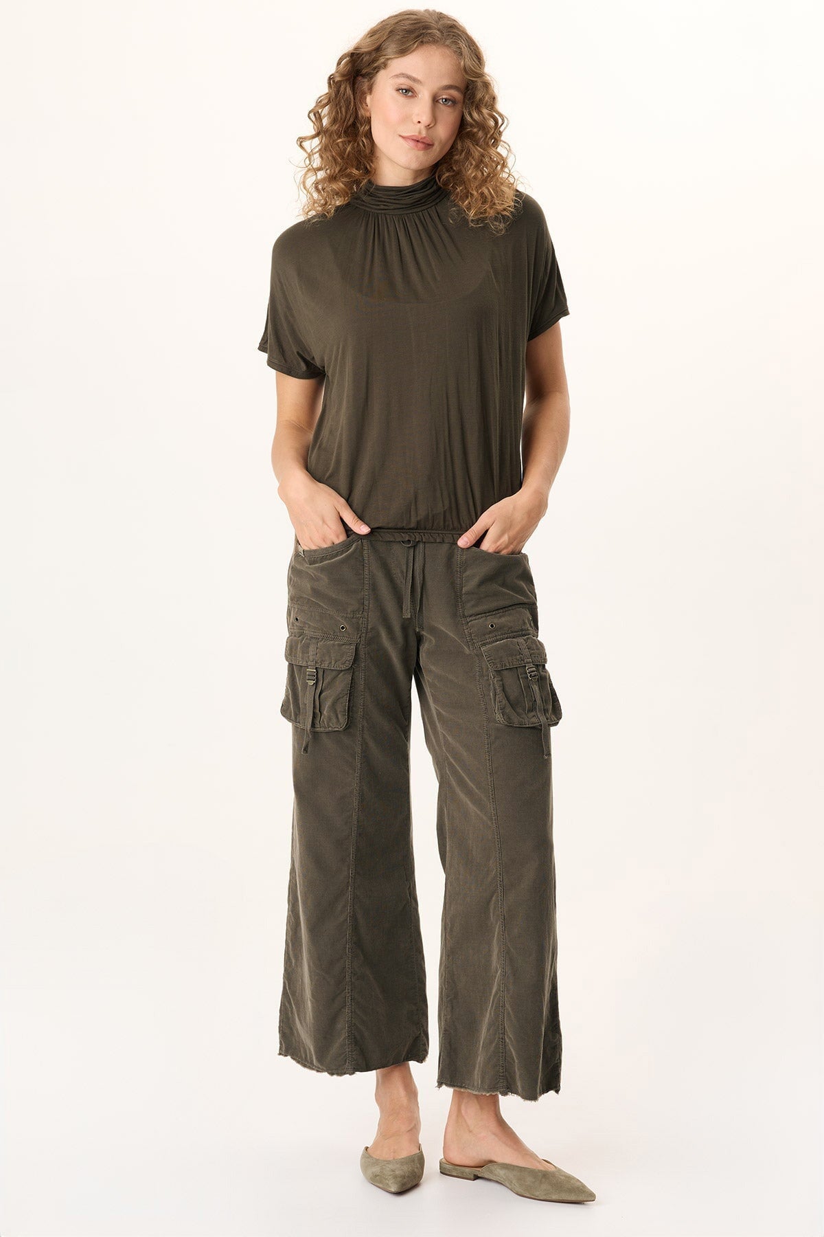 Linton Twill/Rib Snap-Up Back Top in Center Stage Pigment