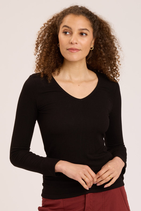 Odilia High-Low Long Sleeve V-Neck Top in Shasta Lake
