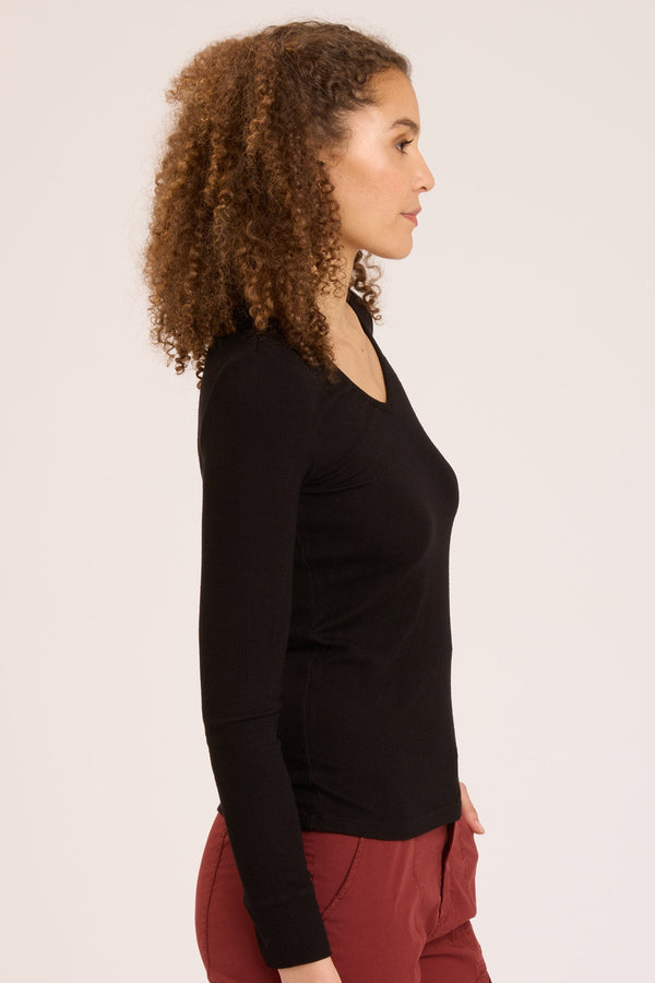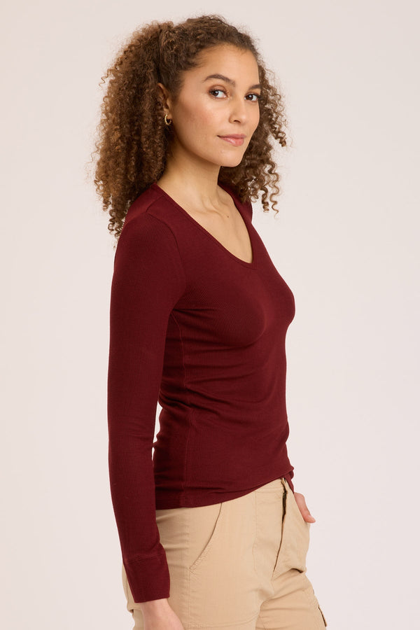 Odilia High-Low Long Sleeve V-Neck Top in Corundum