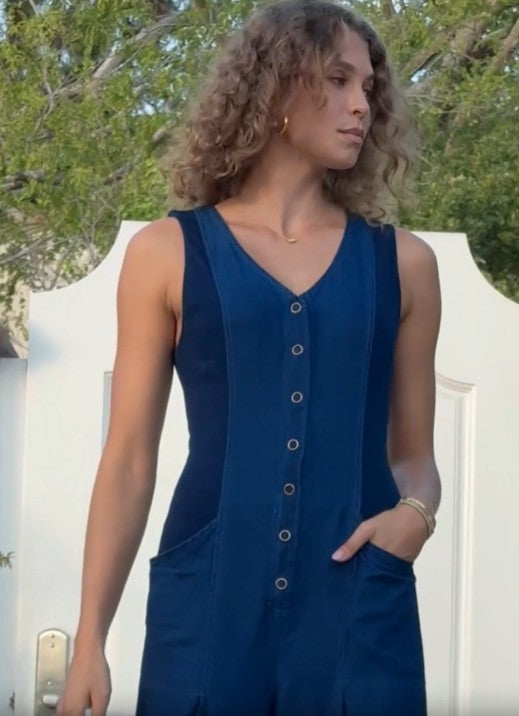 Aisling Indigo Snap-Up Jumpsuit in Sluice Wash