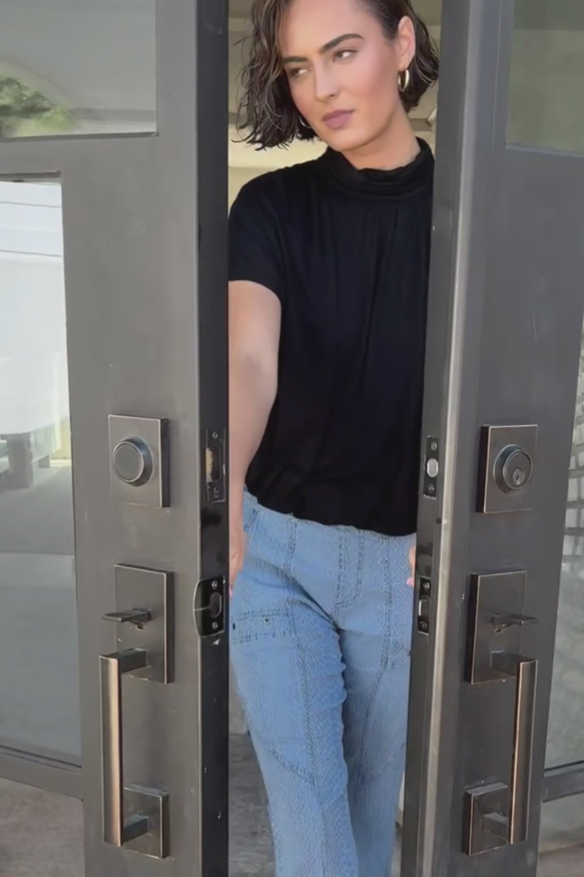 A gentle, cheeky flared silhouette leans into the uniqueness of this textured Camille Jacquard pant. With a distressed double hem, pull-on waist, and brass eyelet-adorned pockets, Askell is asking to become a wardrobe staple and statement piece all in one.