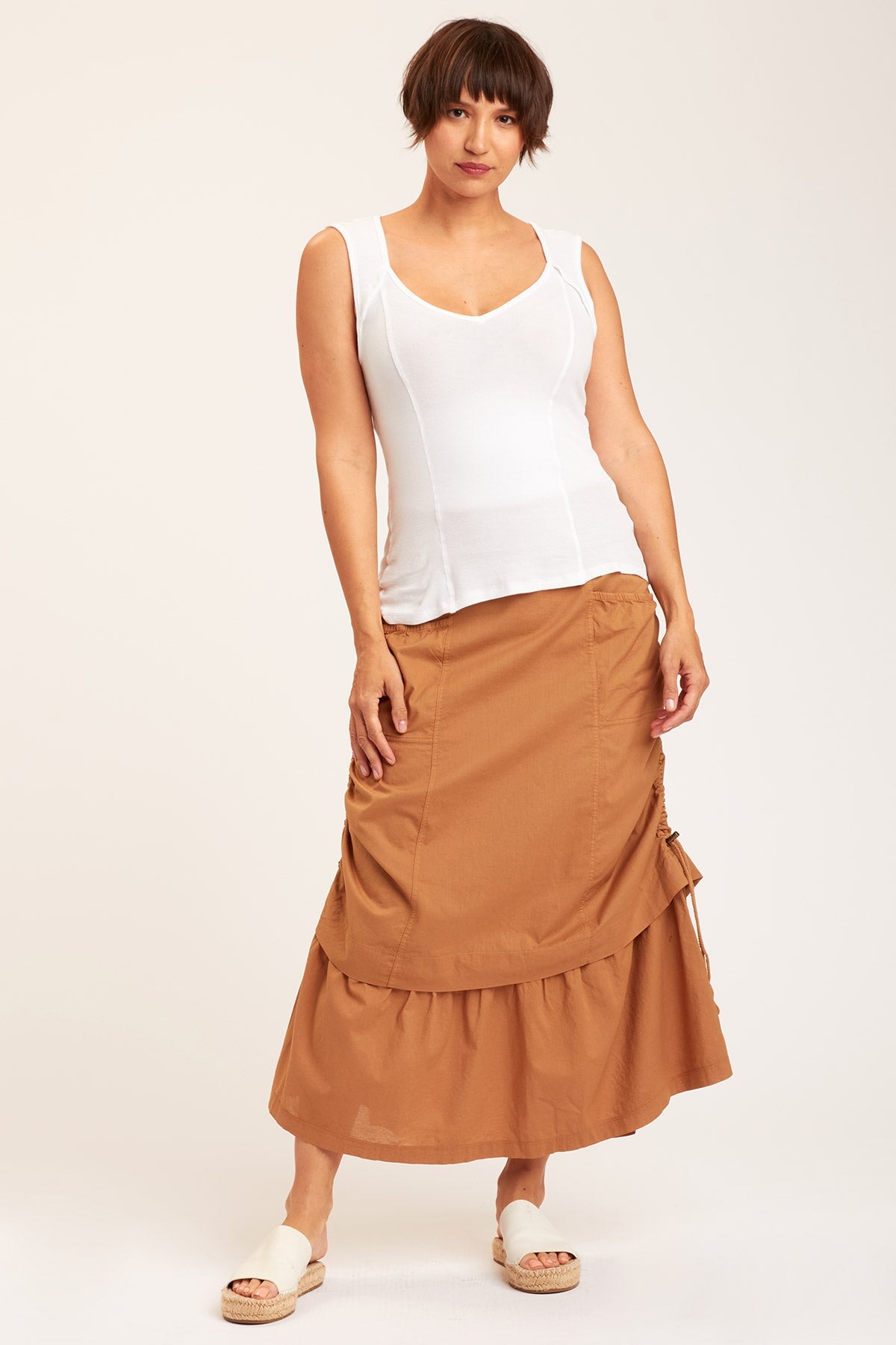 Layers on layers, the Baroness skirt is here to impress! With a double layer of Cotton Voile, this maxi skirt features a drawstring detail on the top skirt allowing for a dynamic looking style. Complete with foldover waist and front pockets, this skirt is definitely a show stopper.