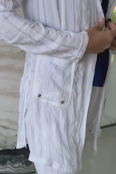 A one button, long length, side split blazer in a fun new fabric, Barron brings class and pizzazz back to your closet.