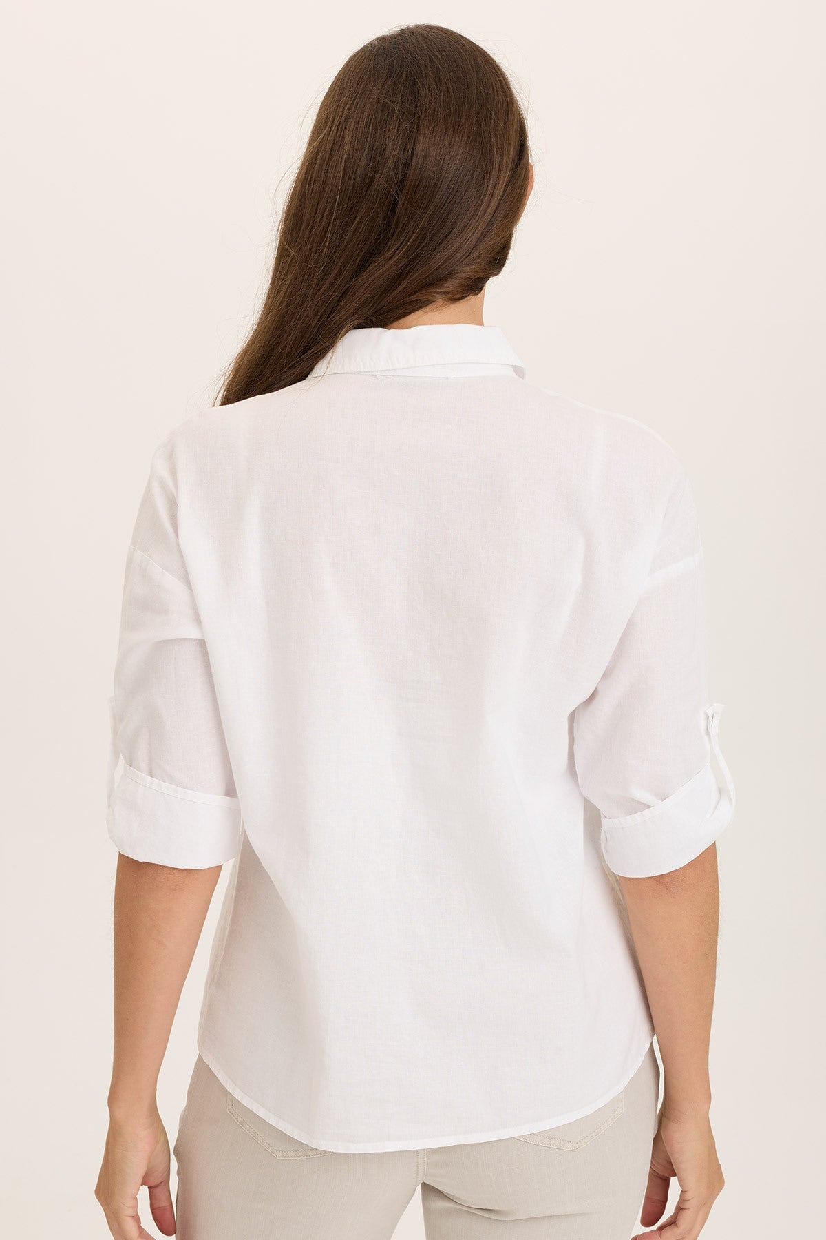 Carrie Linen 3/4-Sleeve Button-Up in White