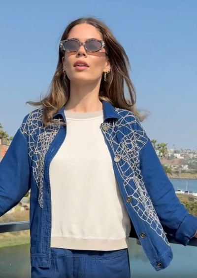 Helm Embroidered Mock-Denim Jacket in Sluice Wash