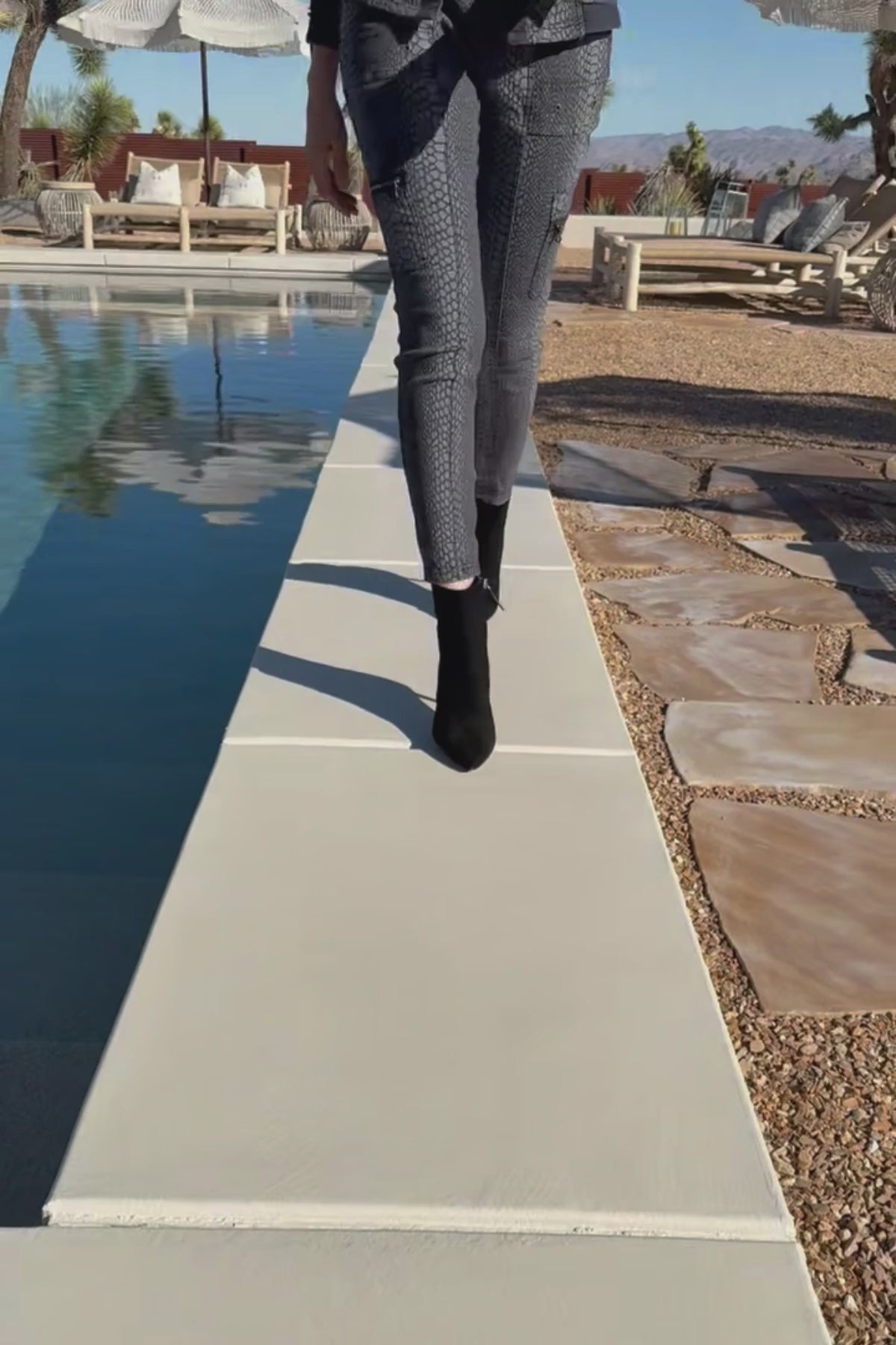 Textured Camille Jacquard brings a hint of the animal kingdom to this elevated legging. A pull-on waist, plus hip pockets and zippered side pockets on each leg finish off the look.