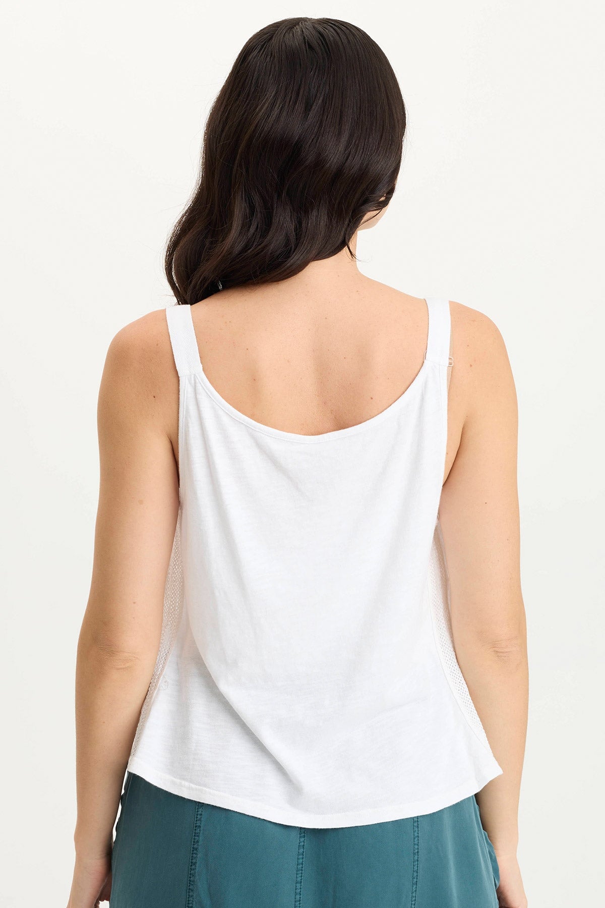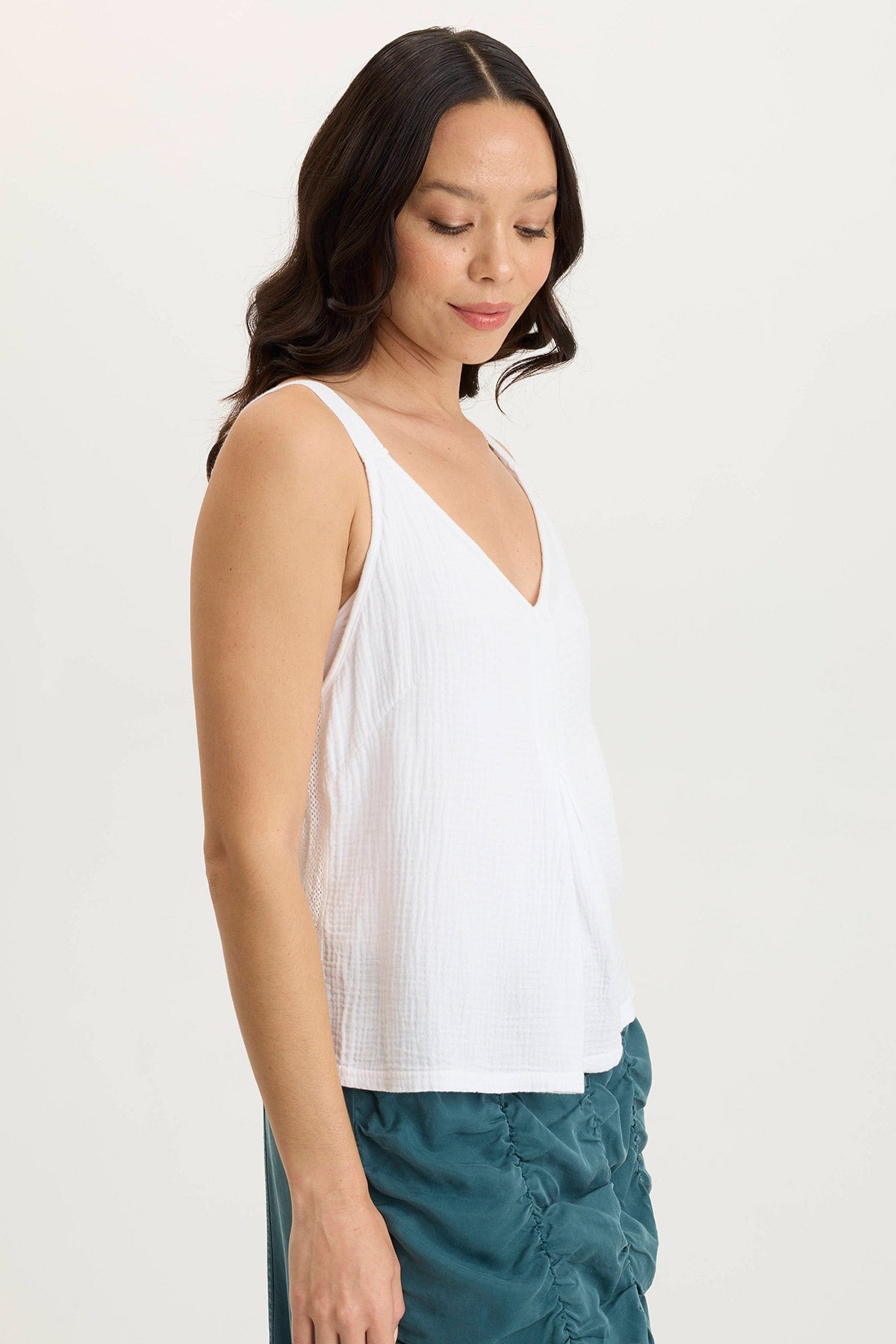 Hedley Gauze/Jersey Box Pleat Tank in White