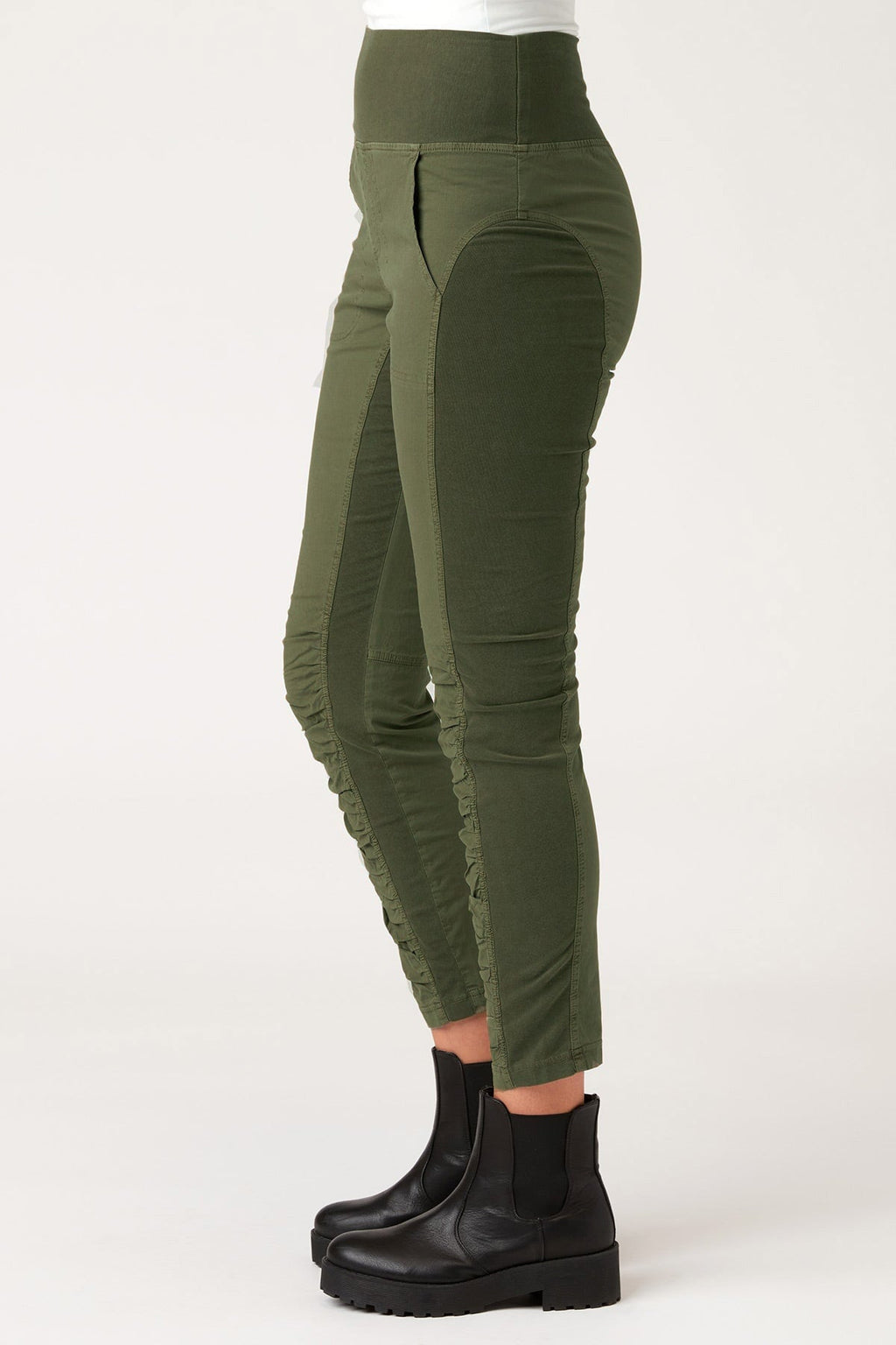 Picture this: high-waisted legging, ruched leg panels, front pockets, jersey inserts from hip to hem and in signature poplin to boot! What. Do. We. Have. Here!? Introducing Penny; she'll be your new best friend.