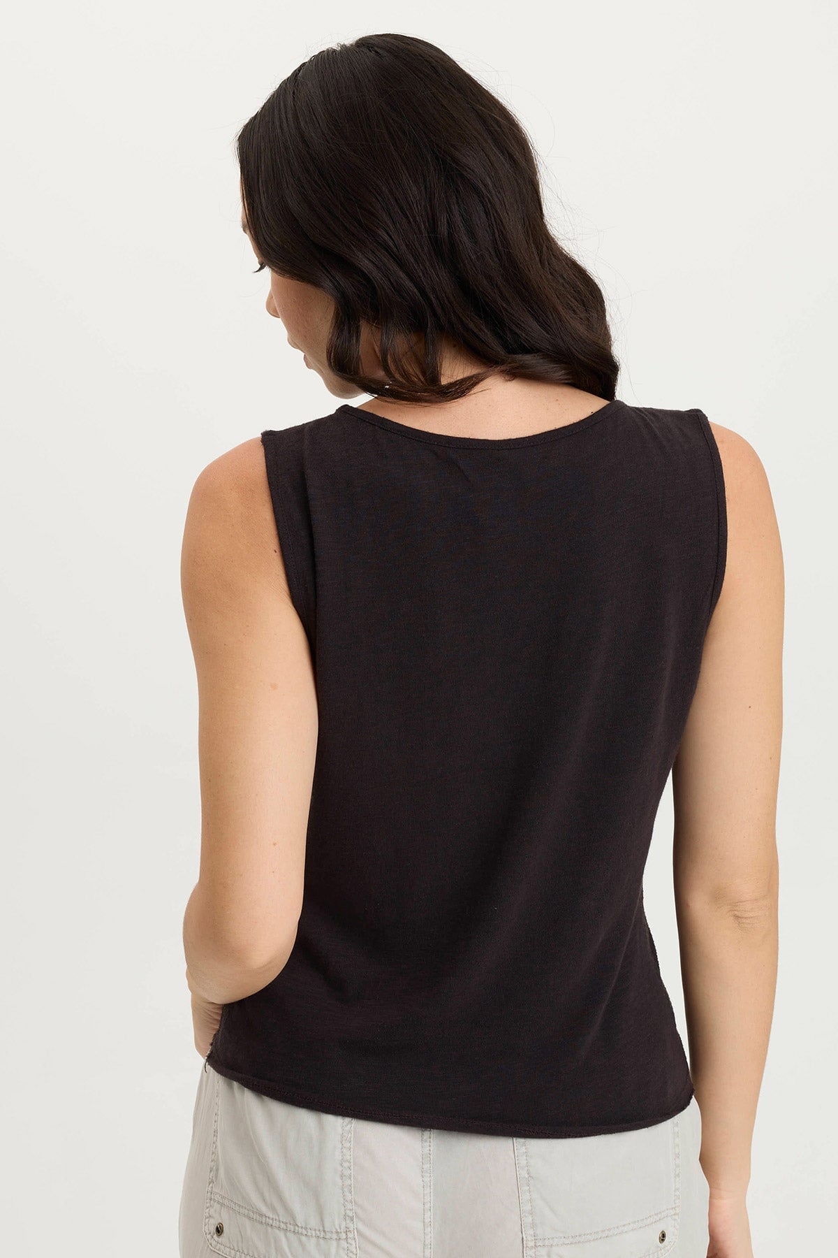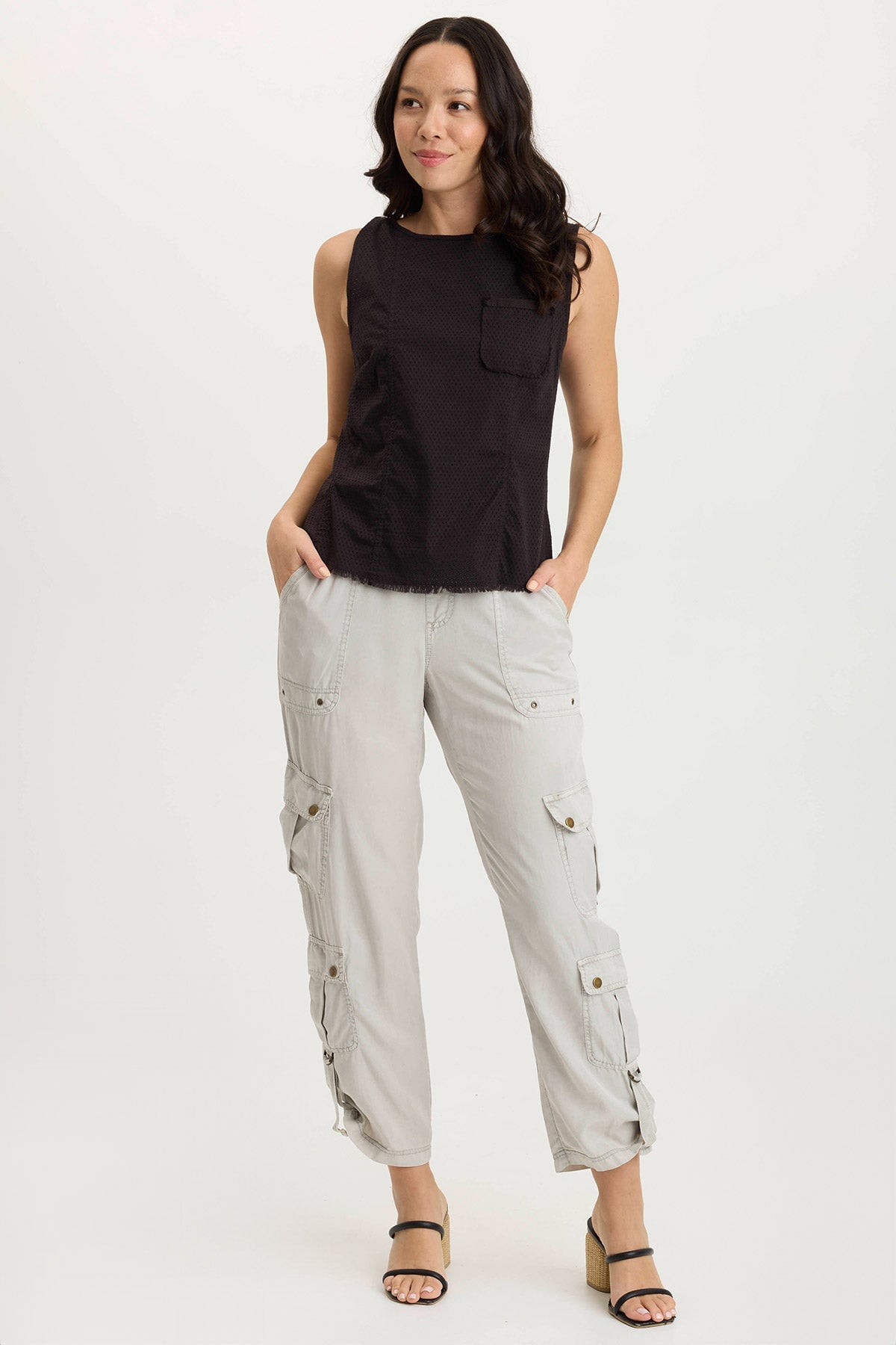 Landis Peforated Poplin + Jersey Pocket Tank in Black