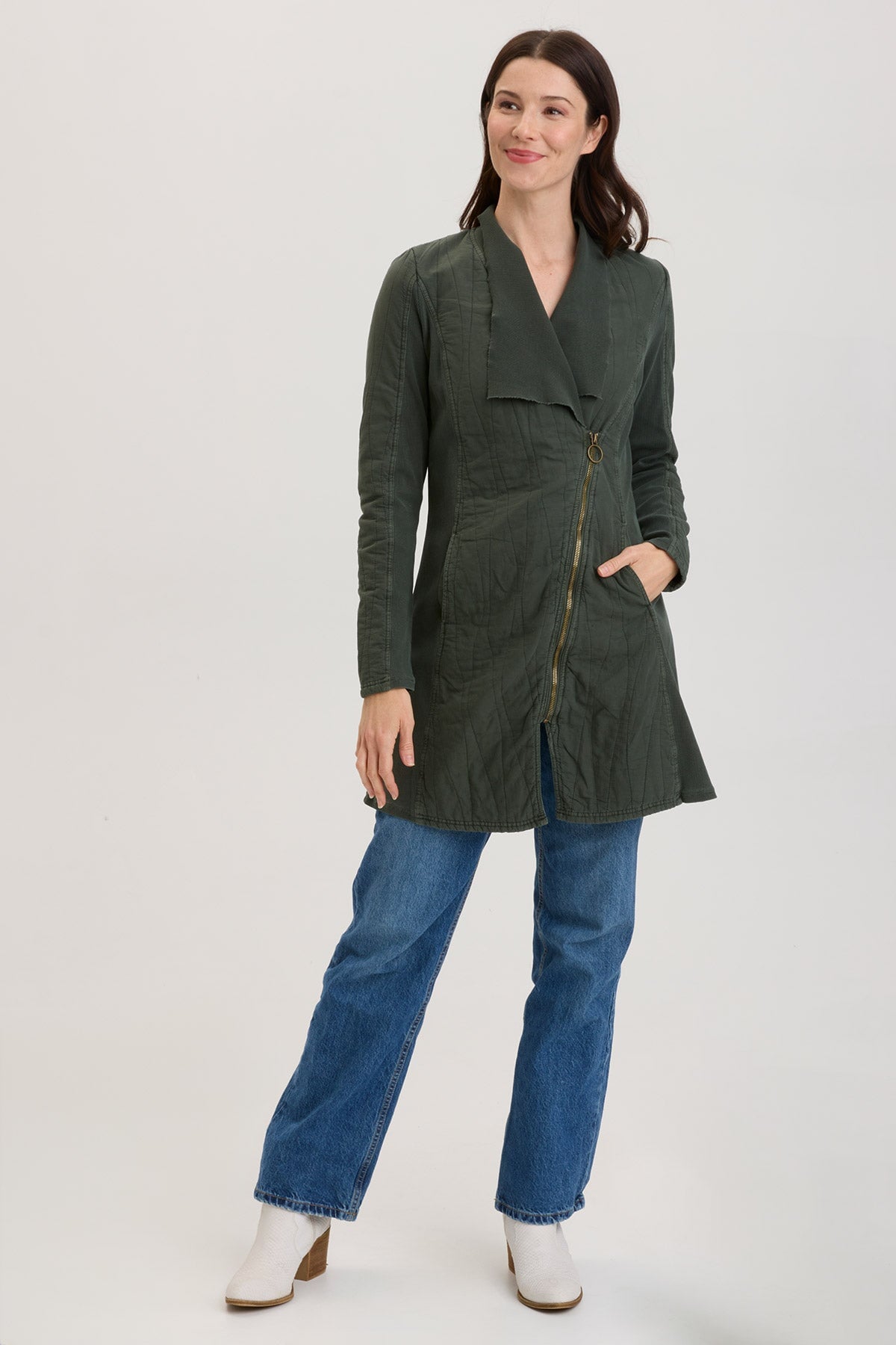 Channeling its inner moto jacket, Maimon features contrast rib, an elongated body and front pockets.
