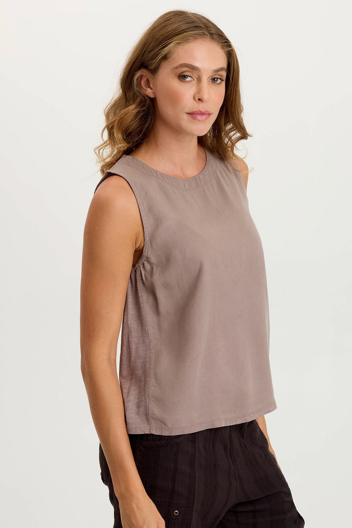 Massimo Twill/Jersey Wide-Neck Tank in Poppy Seed