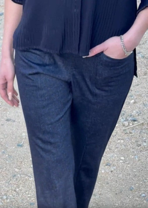 Indigo Ponte makes its mark with the Mauro Flare Pant. A pull-on waist and pockets ensure maximum comfort for a pant with that wear-anywhere flair (and flare)!