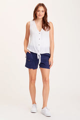Prosper Poplin Ruched Buckle-Pockets Short in Distress Wash Fresco