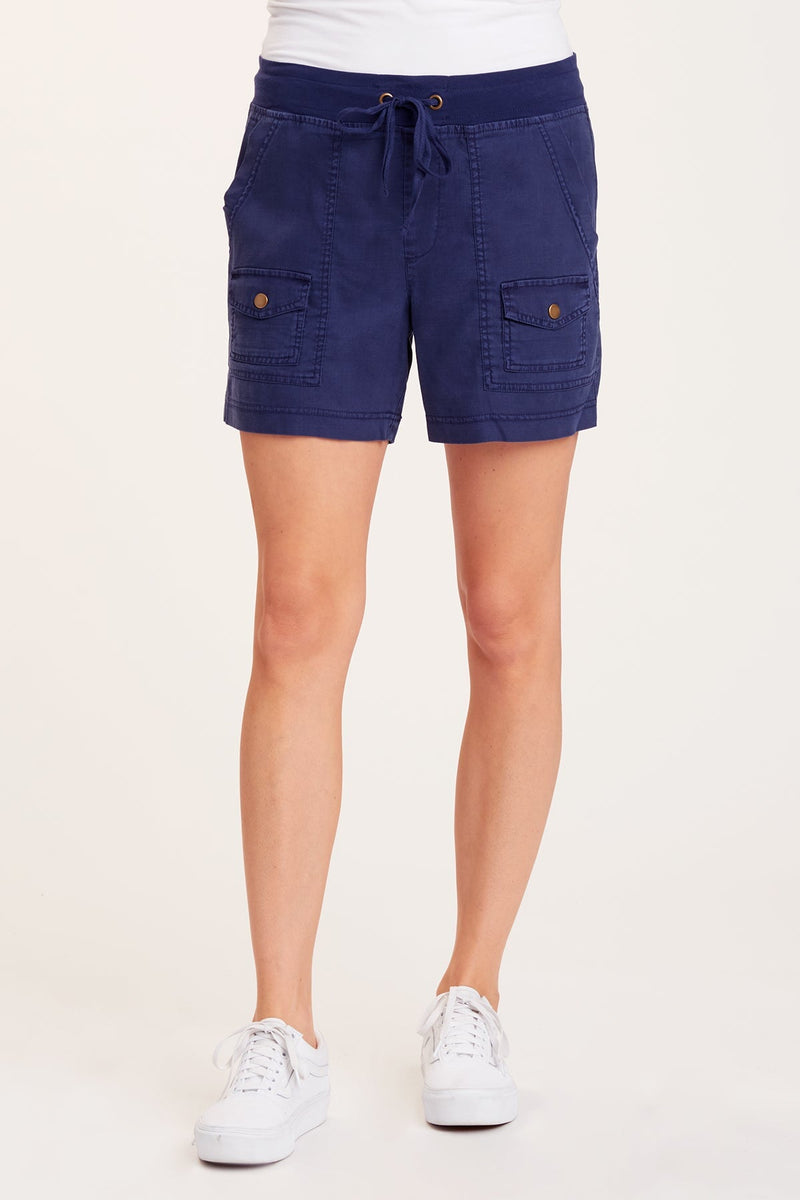 Felix Stretch Poplin Cargo Drawstring Short in Navy
