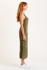 Our clean jumpsuit is back with a zip-up flare. Ring-snap cargo pockets, an elastic cinched back waist, and classic fabric mixing are all featured in the Norris Jumpsuit.