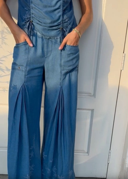 Jerona Printed Indigo Pleated Wide Leg in Etiolate Wash