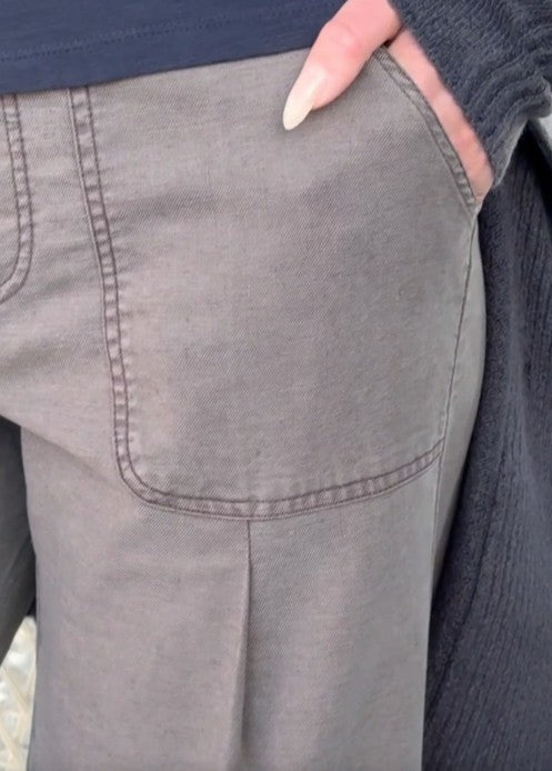 Riven Twill Wide Leg Pull-On Pant in Charcoal