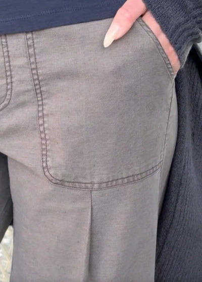 Riven Twill Wide Leg Pull-On Pant in Charcoal
