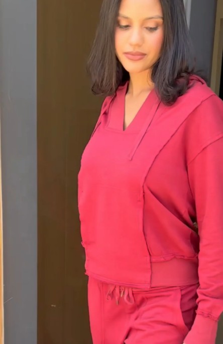 Raw edging details and exaggerated rib contrast has Rosalyn turning heads. With a traditional kangaroo pocket and slimming seaming, Rosalyn will be your favorite fashion sweatshirt.