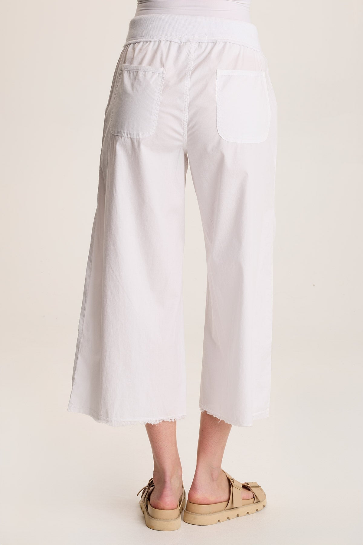 Shirrings below an exaggerated side pocket add soft volume and movement to this drawstring-waist poplin crop. Throw in a raw-edge hem and antique brass hardware and you've got the beachy yet elevated capri look you've been dreaming of!