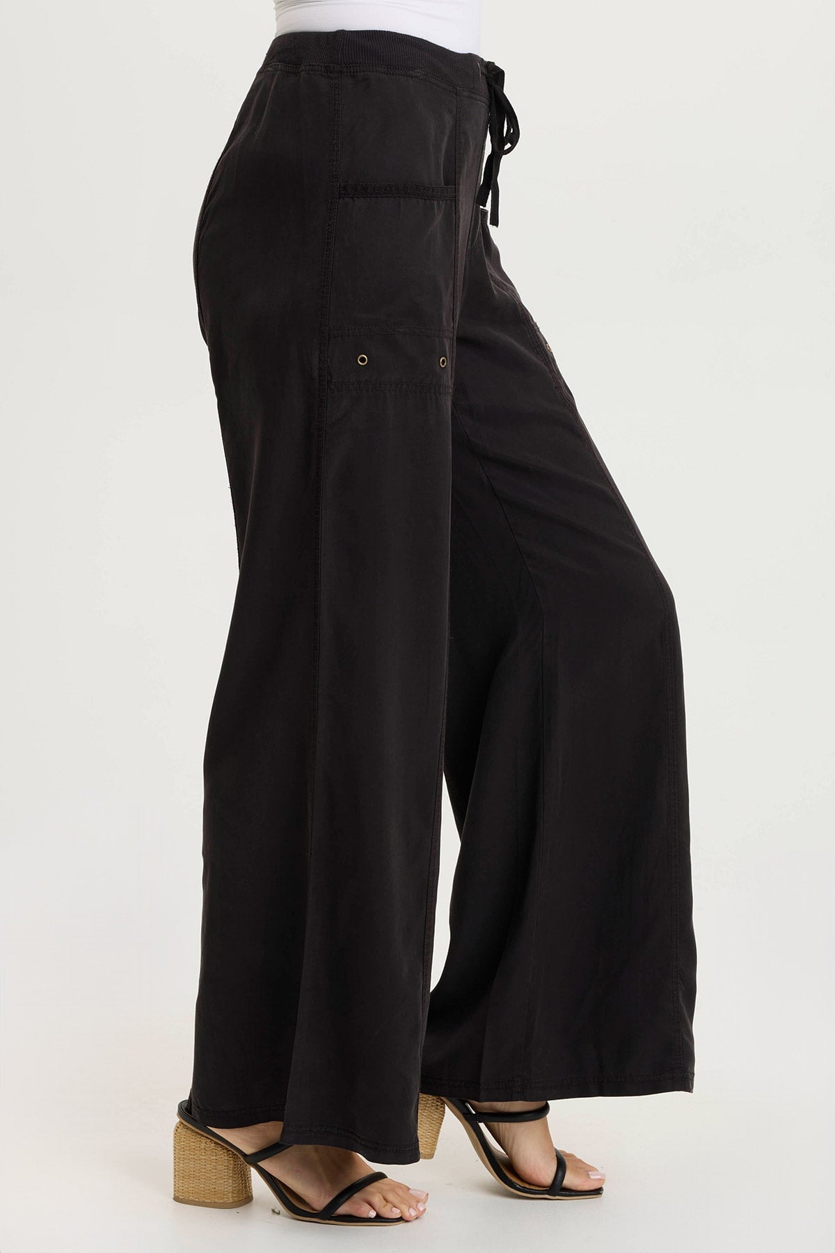 Tarla Twill Dropped Pocket Wide Leg Pant in Black