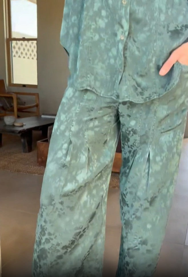 Twaina Textured Satin Soft Volume Wide Leg Pant in Ocean Storm Pigment