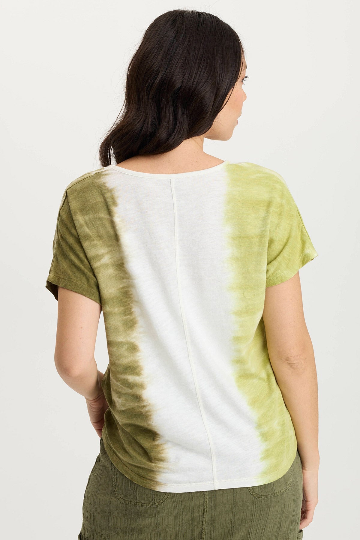 - Color Description: Mid-Tone Olive, Lime Green and White Vertical Sectional Tie-Dye