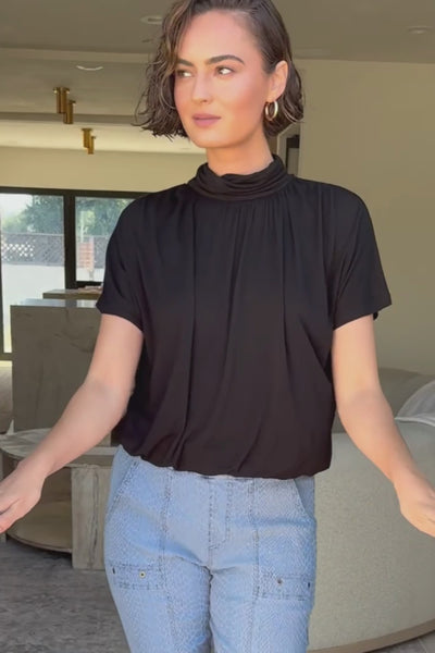 Viggo Soft Jersey Turtleneck Banded Tee in Black
